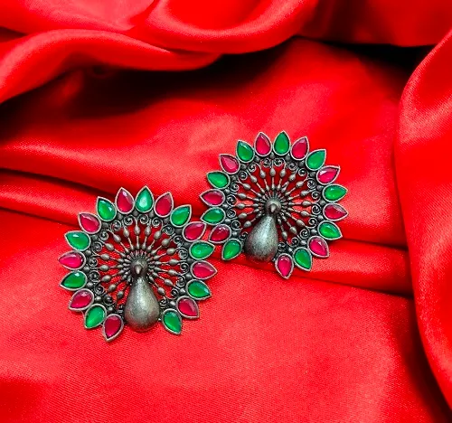 Tags: BLACK POLISH EARRING, EARRING, PEACOCK STUD, STUD