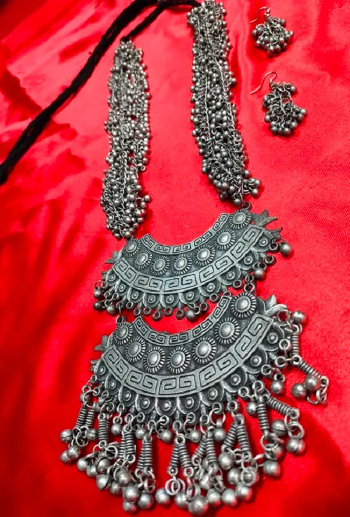 BLACK OXIDISED LONG NECKLACE SET