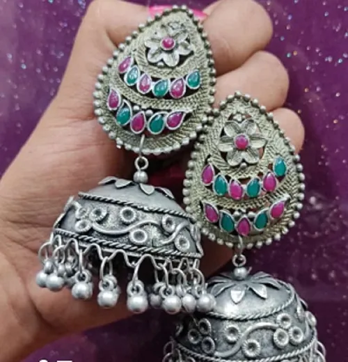 BLACK POLISH STONE PARTY WEAR JHUMKA