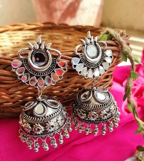 SILVER OXIDISED MIRROR JHUMKAS